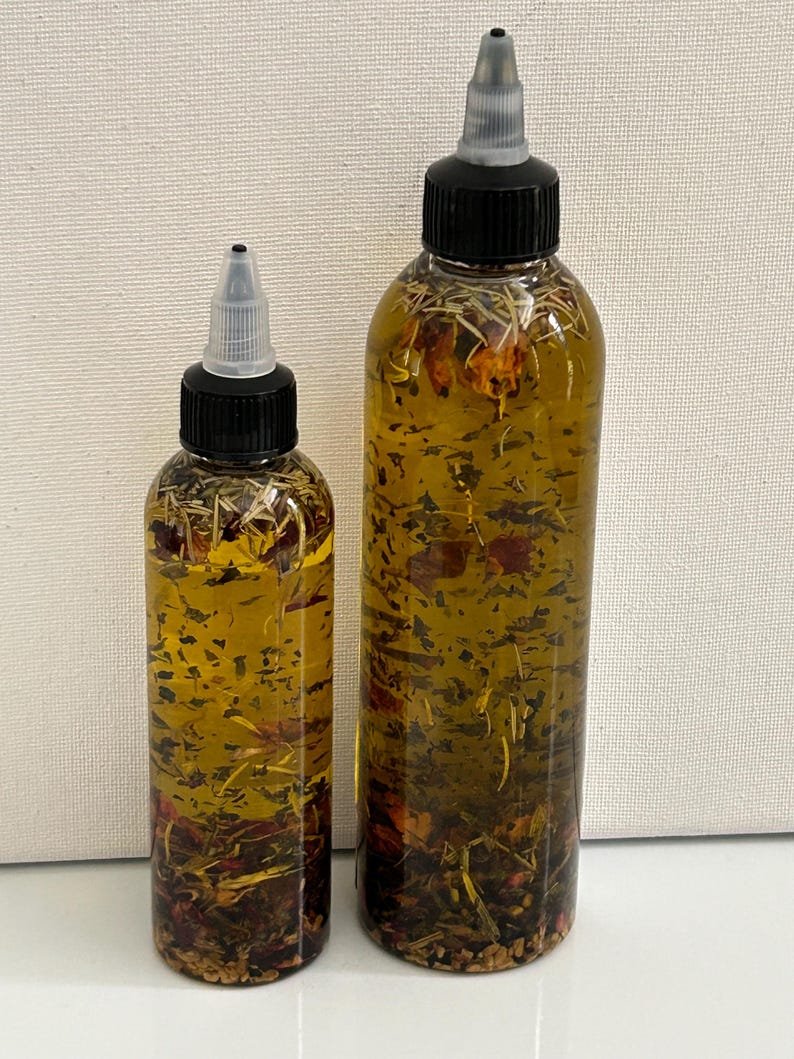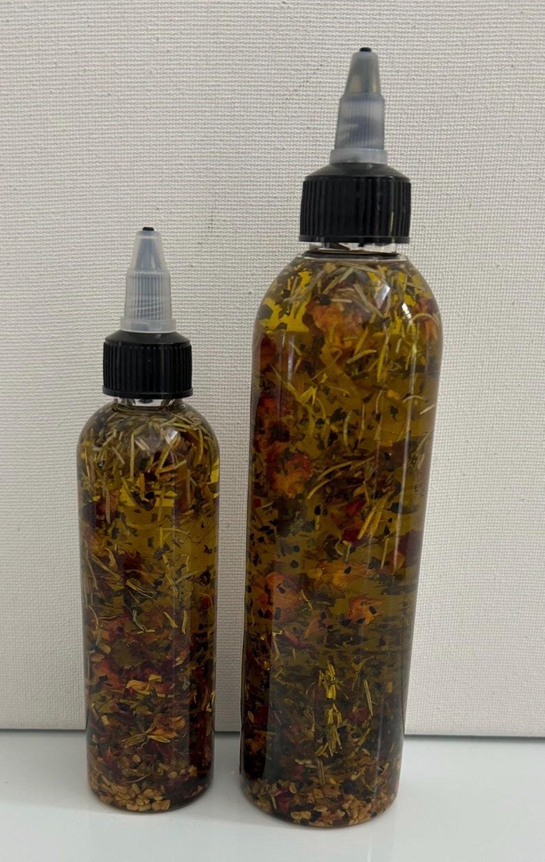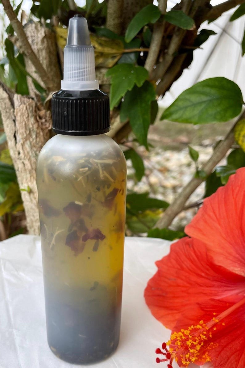 This hair oil is made of natural oils and herbs. It will stimulate and promote growth.